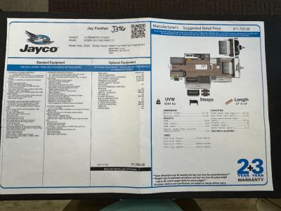 Jayco Carolinas is not responsible for any misprints, typos, or errors found in our website pages. Any price listed excludes sales tax, registration tags, and delivery fees. Manufacturer pictures, specifications, and features may be used in place of actual units on our lot. Please contact us @704-246-5392 for availability as our inventory changes rapidly. All calculated payments are an estimate only and do not constitute a commitment that financing or a specific interest rate or term is available.